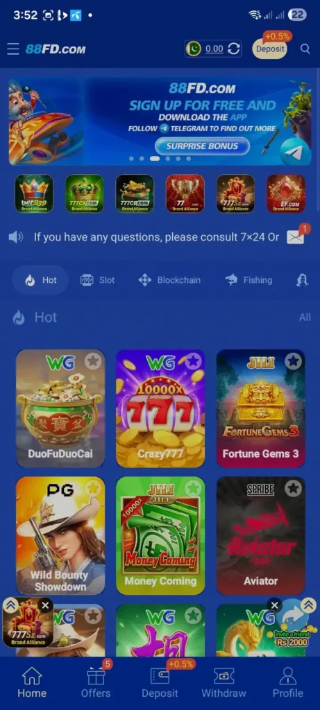 - Launch the App: Open the 88FD icon from your mobile home screen or app drawer.