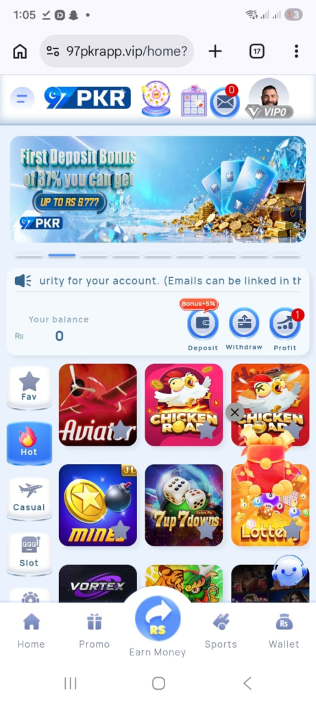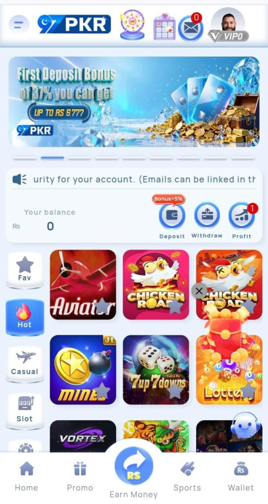 The minimum amount you can withdraw is typically very low, often around Pk100 or PK200. This makes it accessible for casual players to cash out their small winnings easily via UPI or bank transfer.
