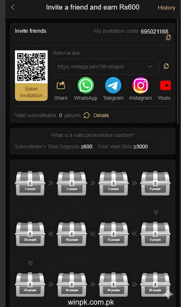 Word-of-mouth marketing works best when both sides win, and Mil Win Game offers a generous two-way referral system. When you invite a friend using your unique code, that friend receives an instant joining bonus of coins. In return, you earn ten percent of your friend’s net winnings during their first seven days on the app. There is no cap on referral earnings, meaning active users with large networks can earn passively without playing a single round. The referred friend does not lose anything; their bonus is extra, not deducted from your share.